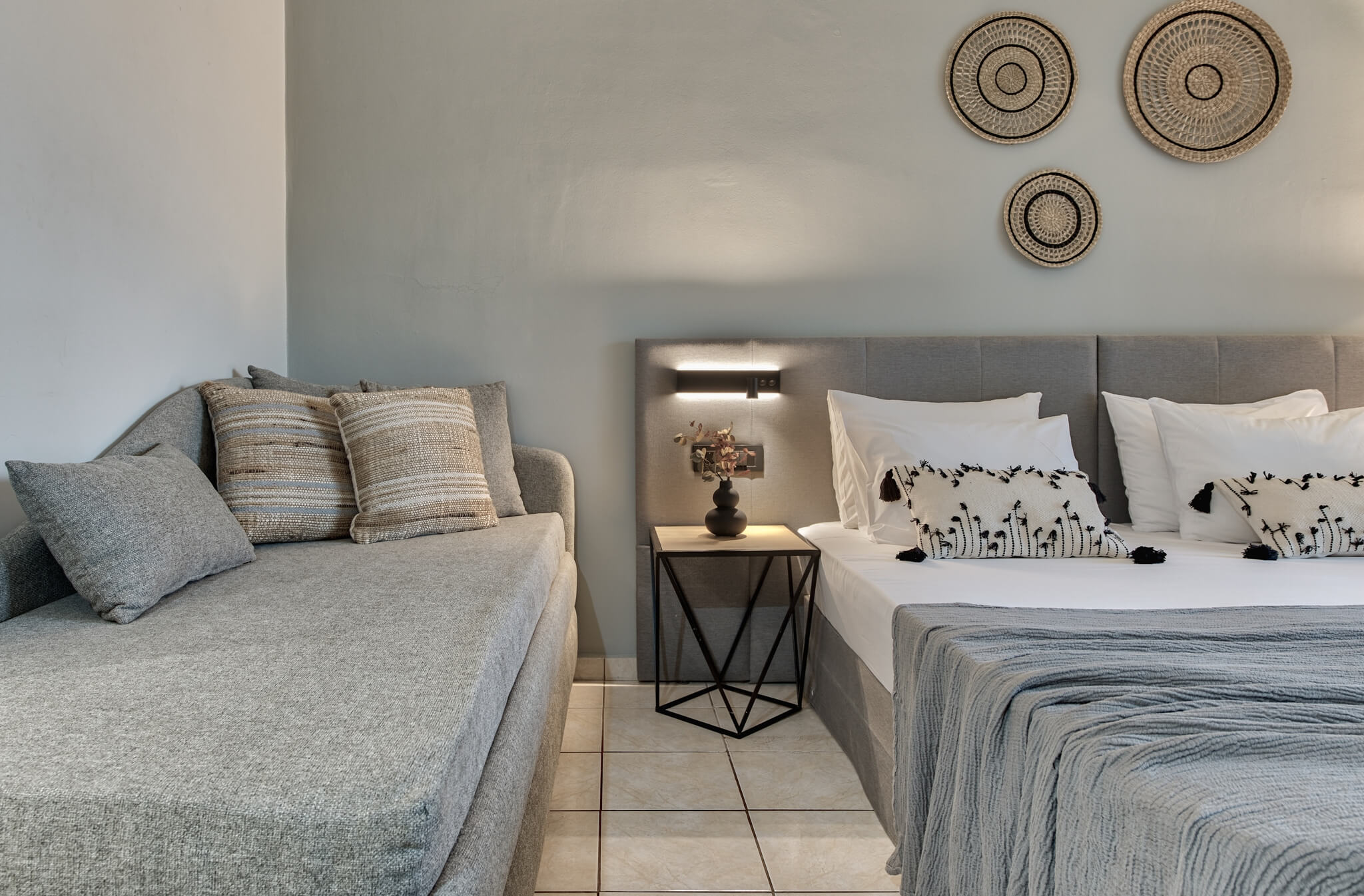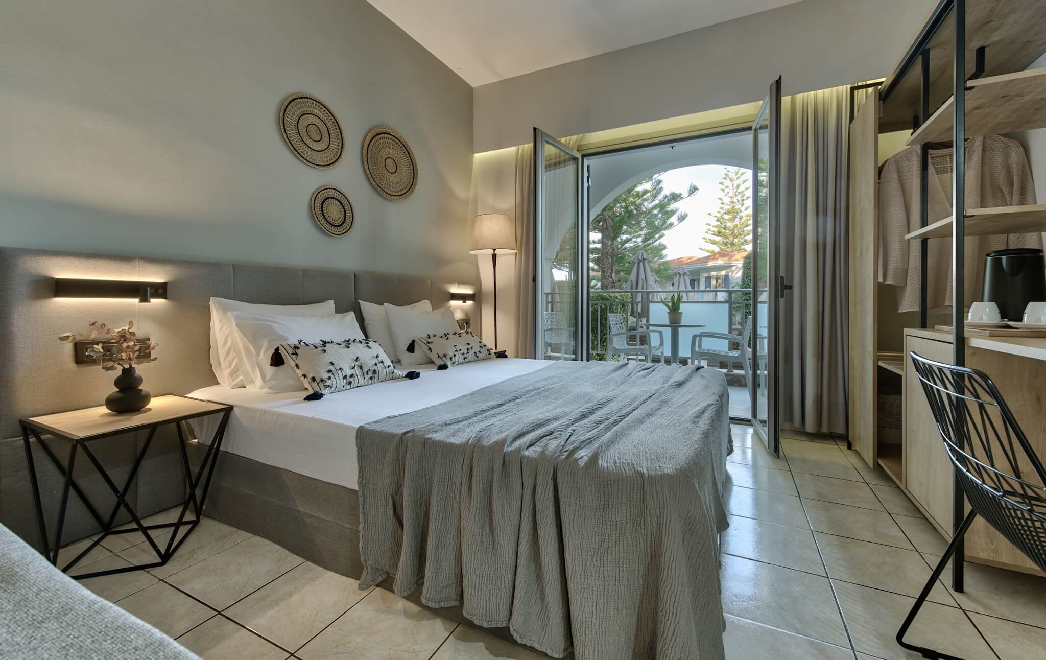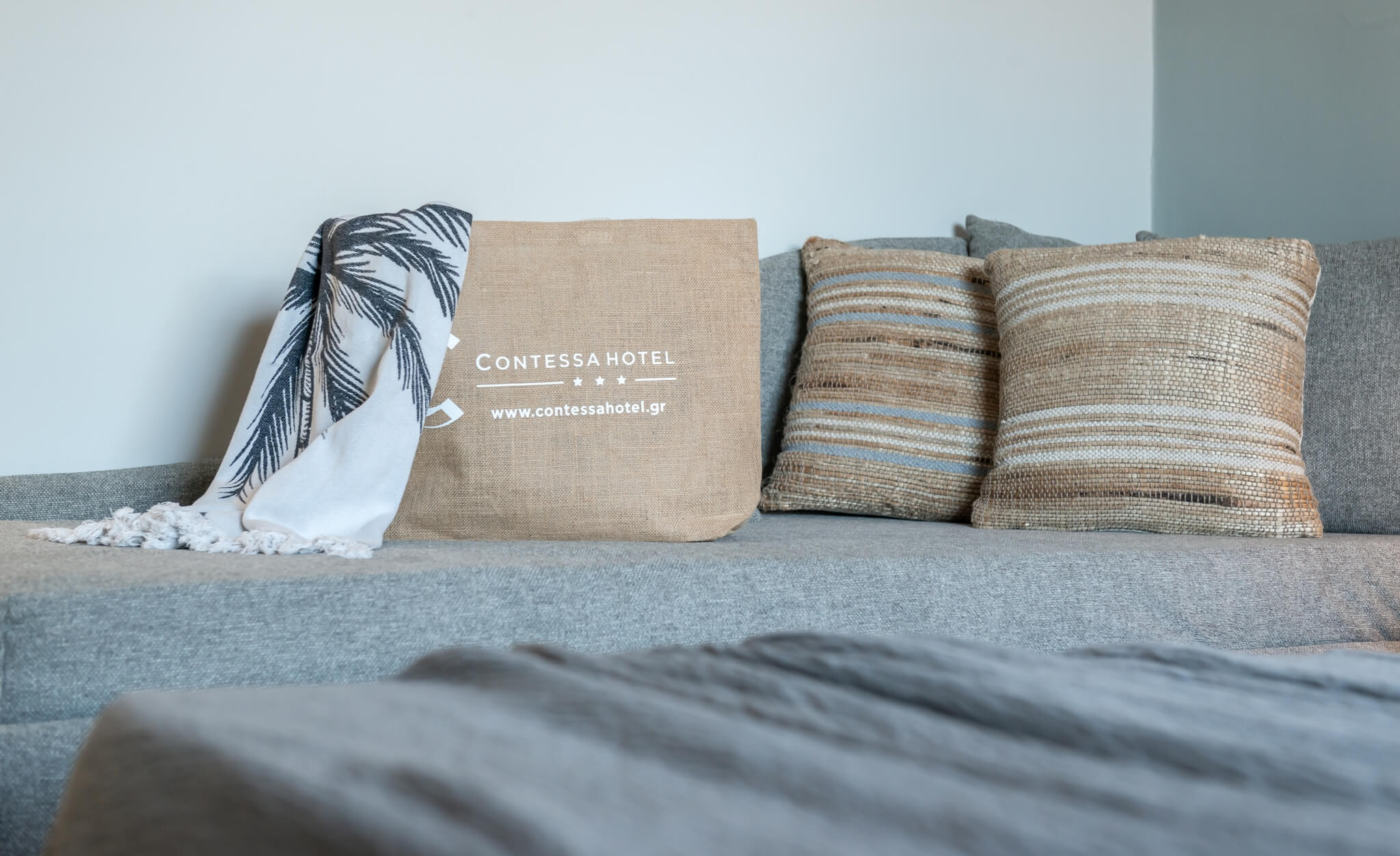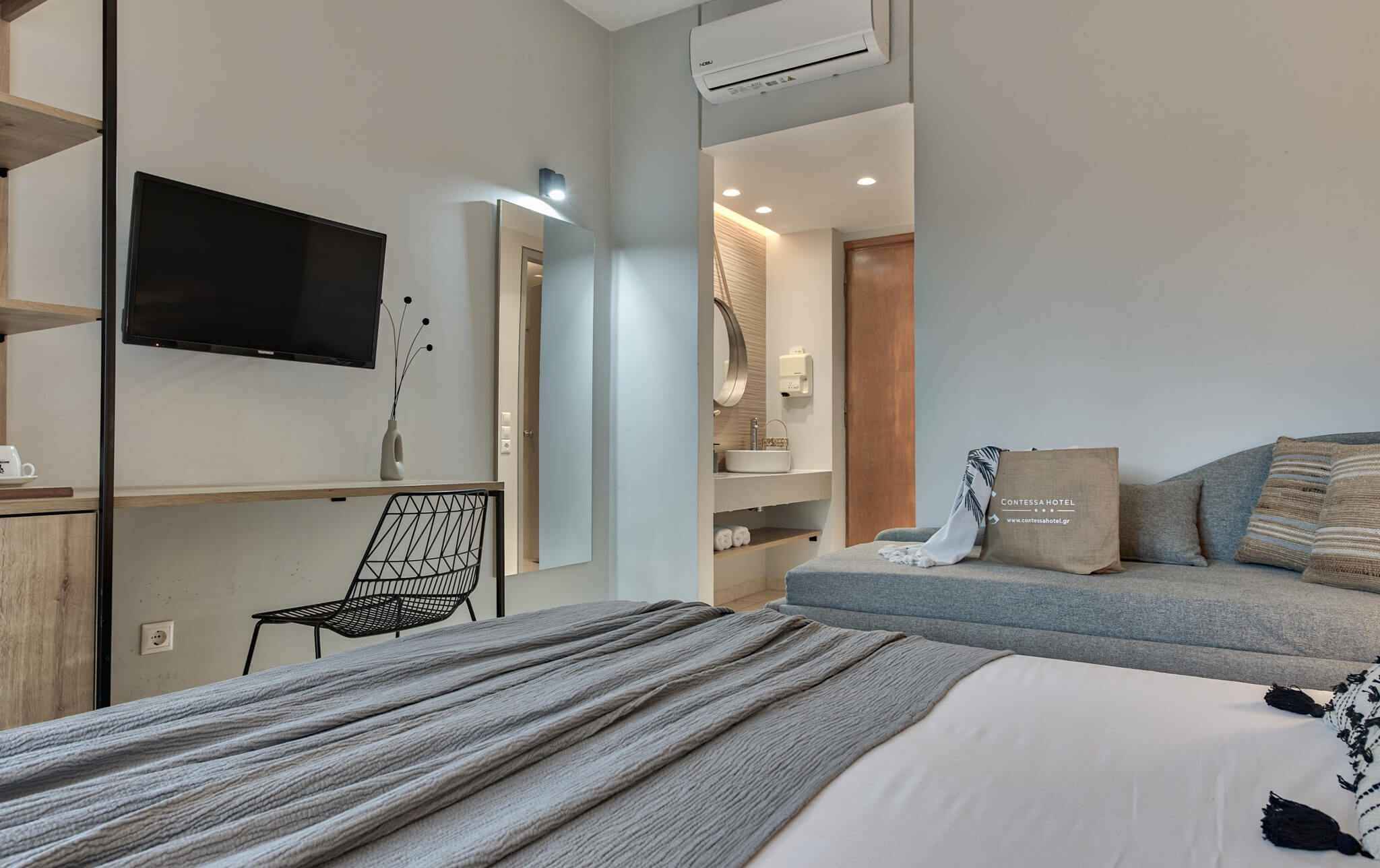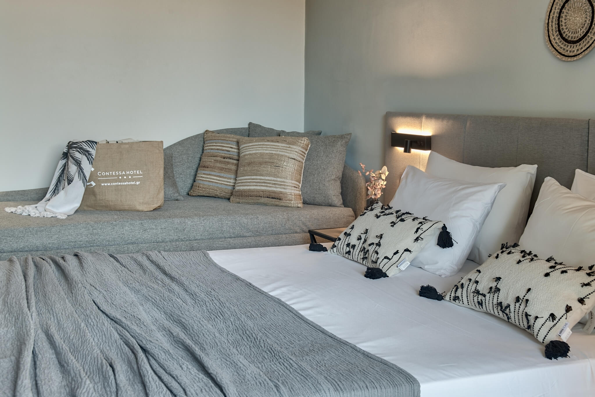At the Contessa Hotel, you can choose from different kinds of rooms like the Standard, Premium and Superior rooms that differ in the dimensions of the rooms and the views (Sea View, Pool view and Mountain or Garden view) select the type that will offer the spaciousness you prefer, depending on your requirements.