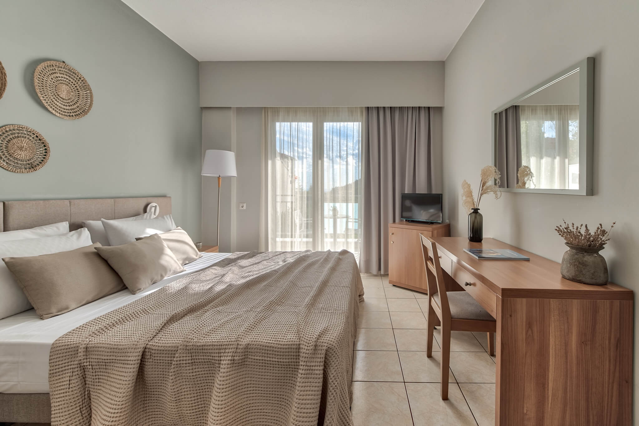 At the Contessa Hotel, you can choose from different kinds of rooms like the Standard, Premium and Superior rooms that differ in the dimensions of the rooms and the views (Sea View, Pool view and Mountain or Garden view) select the type that will offer the spaciousness you prefer, depending on your requirements.